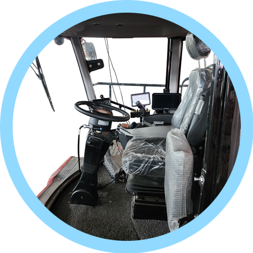 整車全部功能都可以在扶手箱電控按鍵進(jìn)行操作。 增壓駕駛室寬敞明亮,保護(hù)駕駛員安全。配備豪華氣動懸浮座椅,副駕駛位。 智能車載系統(tǒng)可以清晰顯示油溫水溫轉(zhuǎn)速等基本信息并且搭配進(jìn)口智能噴霧系統(tǒng)。